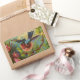 This colourful print illustrates a bluebird resting on a branch in a flower filled forest. This view shows the bird as it is about to take flight. Bright blue, pink, yellow and green colours make an exciting image for decor and personal accessories.