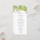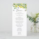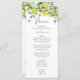 This is a watercolor lemon botanical themed wedding menu. The design shows a branch of a summery lemon tree, its white flowers, green leaves and fluttering butterflies.
