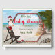 Summer holidays at the beach during Christmas with dancing penguins under the palm trees to personalise for a baby girl or boy ( Thanks says the stork at the back )