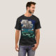I give wanted to give this a 4 instead of a 5 because these Basic DARK T0shirts run unexpectedly SLIM or Narrow. Which is great if you do not have a potbelly, but I have a paunch. It isn't the shirt's fault that I've got a beer belly. The design and shirt itself is a quality cotton shirt. The color is more of a deep purple, but still a very pretty color. The Basic DARK T-shirts run a bit SLIMMER than the Basic Ts. The neck is a fraction narrower (or seems to be narrower) also. I'm a paunchy middle-aged woman and my neck is 12 inches (31cm) thick and the neckline fell about the same as in the photo of the man, and I had the desire to tug it a bit. So if you're a thick necked man or like loose shirts, be aware these are slimmer shirts. Once I get rid of my lockdown paunch it'll look great. The shirt washed well in cold water with no apparent bleeding. We don't have a dryer, so it hung dry. Did not shrink. Love the colors and the design. The design looks smaller on my shirt than it does on the model on-line. But still, it looks good on the shirt. The printing looks as it does on the model, just the size seems fractionally smaller. Washed garment in cold water, hung dry and design appeared unaffected.