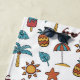 Create your own unique summer beach vacation pattern with this design featuring coconut tree, monstera leaf, beach umbrella, sand, pineapple, heart-shaped sunglasses, popsicle, starfish and a blazing hot sun. Replace the sample text with your own for a personalised gift. Great for summer and every other day of the year when we like to pretend it’s summer.
