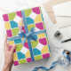 Contemporary, stylish SUMMER COLORS Wrapping Paper, with quadrants of lime green, cerise, banana yellow and cyan blue, in a geometric, mosaic tiled effect pattern. This vibrant, colourful design makes a great finishing touch for wrapping gifts or for craft activities. Matching items and party supplies available.