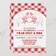 Crab boil / bake invitation with a gingham pattern background, crab, clams, bubbles, starfish and seaweed. Easy to customise with your own text. Original Illustration by pj_design. Please check my store for more like this.