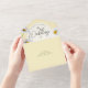 The simple country daisies exude a sense of natural beauty and innocence, symbolising the purity and joy of your love. Against the calming pale yellow backdrop, they create a picturesque scene that captures the essence of a serene countryside wedding. The All-in-One wedding invitations are both beautiful and practical by combining the wedding invitation with an easy to remove perforated RSVP postcard. They are also quick and easy to prepare for mailing. Simply address the invitation, fold the back flap and seal with the included clear stickers. Once your guests receive the pre-addressed invitation they simply tear off the perforated RSVP card and drop it in the mail. The addition of the QR code allows your guests to easily access your wedding website for information including reception details and dinner choices!
