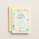 Summer party invitation. Features, colourful summer doodles border and coordinating yellow pattern backing.