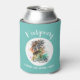 Fun for your summer vacation, a personalised can cooler featuring a summer vacation illustration on a turquoise background along with your family name, year in chic lettering. MATCHING items in our collection.