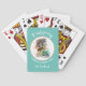Fun gift for your summer vacation, a deck of playing cards feature a summer vacation illustration on a turquoise background along with your family name, year and location in chic lettering.