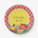 Summer Fiesta Red Floral Quatrefoil With Name Paper Plate