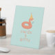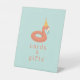 flamingo pool float. beach ball. sun. popsicle. modern. fun. cute. modern. birthday party. pool party. summertime. pool time. personalized party products supplies. Custom Personalized gifts & cards Pedestal Sign . Gift table. card table.