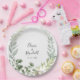 This summer floral green foliage white wedding paper plate is perfect for a simple wedding reception. The design features watercolor green leaves and pink flowers bunched in artistic looking bouquets.