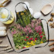 Dress up in the kitchen with this floral themed apron featuring an all-over print design that features the photo image of a colourful, summer flower garden that include Zinnias, pink Astilbe, and yellow Lilies. A lovely, floral design! You may customise your apron strap colour if desired.