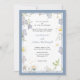 Summer Flowers Blue Wedding with RSVP Invitation designed with petite flowers in soft shades of blue and white, with yellow. The front side text includes: The Bride's Parents Names and The Groom's Parents Names, Request The Pleasure of Your Company At The Marriage of Their Children, The Bride and Groom's Full Names, Wedding Date, Time, Location and Reception Notes. The reverse side text includes: RSVP, Kindly Reply By Date, and Your RSVP Details on a soft blue background. To personalise, simply insert your wedding details into our easy template, replacing the sample text. Be sure to view the entire Summer Flowers Blue Wedding Collection for matching cards and Reception Stationery.