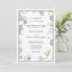 Summer Flowers Blue Wedding with RSVP Invitation designed with petite flowers in soft shades of blue and white, with yellow. The front side text includes: The Bride's Parents Names and The Groom's Parents Names, Request The Pleasure of Your Company At The Marriage of Their Children, The Bride and Groom's Full Names, Wedding Date, Time, Location and Reception Notes. The reverse side text includes: RSVP, Kindly Reply By Date, and Your RSVP Details on a soft blue background. To personalise, simply insert your wedding details into our easy template, replacing the sample text. Be sure to view the entire Summer Flowers Blue Wedding Collection for matching cards and Reception Stationery.