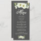Customisable menu card featuring yellow and white anemone on a grey background. This is a part of a wedding suite - matching items are available.