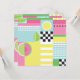 Cute summer design, watermelon, kiwi fruit, sea waves, colourful mosaic, pink, yellow, green, blue, pop art pattern