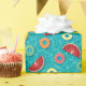This wrapping paper has a pattern with cute summer fruits pool floats on top of a second teal blue pool pattern. There are six different fruit floats. Lemon, lime, orange, grapefruit, watermelon and pineapple. You can make this pattern larger or smaller.