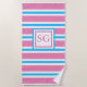 Summer Fun Pink and Turquoise Striped Monogram Beach Towel