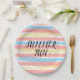 Summer Fun Pink Yellow Blue Watercolor Paper Plate