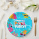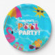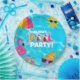 Dive into fun with these cute pool party paper plates! Perfect for kids and adaptable for any age, these vibrant plates set the scene for a splash-tastic celebration. They feature a turquoise pool water background dotted with playful icons like a beach umbrella, a pink flamingo float, flip flops, and more, all under the watchful eye of a whimsical sun. The plates feature text that reads: "POOL PARTY" — the 'O’s playfully replaced with beach balls— with the ability to customise them by adding a personalised name above the text. Personalising is a breeze; just click “Personalise this Template” to make them your own. Get ready to make waves with these delightful disposable plates!
