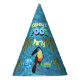 Check out this cool Pool Party paper hat featuring tropical toucans, palm trees, colourful birds, and turtles on a crystal-clear water background.