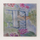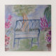What can be better on a hot summer afternoon than wandering into the garden and relaxing on the bench. In this charming watercolor, the blue bench sits on the lawn surrounded by pretty flowers, lavender and trees. Feel the sun on your face when you choose this soft pastel summer garden bench art.