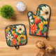 Summer Garden Flowers Strawberry Pattern Oven Mitt & Pot Holder Set