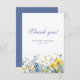 Your choice of photo of the newly married couple with a personal message and signatures on the reverse. Delicate blue and yellow florals are featured on the front with a solid blue and space for message on reverse of card.