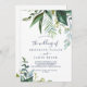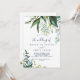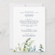 This summer greenery frame all in one wedding invitation is perfect for an elegant midsummer wedding. The botanical design features a lush arrangement of painted watercolor eucalyptus, greenery, and green leaves with subtle sprigs of blush pink blossoms. Save paper by including the details on the back of the wedding invitation instead of on a separate enclosure card. Include the RSVP info as well if your guest will be replying electronically (optional).