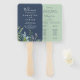 This summer greenery navy wedding program fan is perfect for an elegant midsummer wedding. The botanical design features a lush arrangement of painted watercolor eucalyptus, greenery, and green leaves with subtle sprigs of blush pink blossoms on a navy blue background. Include the name of the bride and groom, the wedding date and location, thank you message, order of service, and bridal party. Order your programs assembled or non-assembled.