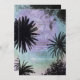 Modern dreamy summer rainbow colours holographic gradient black exotic palm trees cloudy photo, filled with summer vibrant colours, faded planets, crescent moon, shining stars, and clouds. Beautiful magical tropical design.