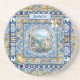 summer italian floral blue tiles citrus monogram Coaster. Chic floral botanical citrus garden pattern inspired by the summer bright italian themed art of majolica. Beautiful Sicilian ceramic tiles in pink yellow and blue. A fun style bright design for home decor, clothes, mobile and Ipad cases, invitations and much more. You can change all text colours and fonts, click to customise further underneath the text customisation area this will take you into the design tool. A unique gift for birthdays, holidays and any special occasion. Whether for valentines day, Christmas or as a gift in general it makes a great gift idea