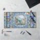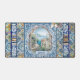 summer italian floral blue tiles citrus monogram Desk Mat. Chic floral botanical citrus garden pattern inspired by the summer bright italian themed art of majolica. Beautiful Sicilian ceramic tiles in pink yellow and blue. A fun style bright design for home decor, clothes, mobile and Ipad cases, invitations and much more. You can change all text colours and fonts, click to customise further underneath the text customisation area this will take you into the design tool. A unique gift for birthdays, holidays and any special occasion. Whether for valentines day, Christmas or as a gift in general it makes a great gift idea