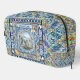 summer italian floral blue tiles citrus monogram Cosmetic & Toiletry Bag. chic floral botanical citrus garden pattern inspired by the summer bright italian themed art of majolica Sicilian ceramic tiles in blue yellow colours. A fun style that is currently trending for home decor, clothes, mobile and Ipad cases, invitations and much more. You can change all text colours and fonts, click to customise further underneath the text customisation area this will take you into the design tool. A unique gift for birthdays, holidays and any special occasion. Whether for valentines day, Christmas or as a gift in general it makes a great gift idea