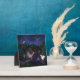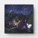 Starry Night art by Traci Van Wagoner print, posters, accessories, and gifts features our original painting of two kids and their big, black dog camping out under the stars reading a fantastical book around a camp fire about knights and dragons. The magic of the story is swirling up into the starry sky to show a knight and a dragon in an eternal nighttime dance of stars. Enjoy a summer night camp out in the mountains.