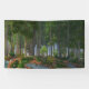 A stand of trees on an sunny summer day. The tall trees are tall and dark, but the saplings underneath have bright new growth. Growing up through the fallen leaves are the green and pink and white of clover and other ground covers.
