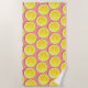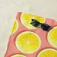 A pattern of fresh & juicy lemon slices in bright, vivid shades of yellow, with a watercolour texture to give it that freshly cut look. They are placed on a salmon pink background for a bright & summery look, like pink lemonade.