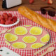A pattern of fresh & juicy lemon slices in bright, vivid shades of yellow, with a watercolour texture to give it that freshly cut look. They are placed on a salmon pink background for a bright & summery look, like pink lemonade.