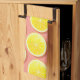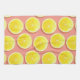 A pattern of fresh & juicy lemon slices in bright, vivid shades of yellow, with a watercolour texture to give it that freshly cut look. They are placed on a salmon pink background for a bright & summery look, like pink lemonade.