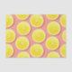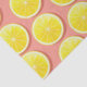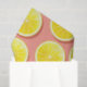 A pattern of fresh & juicy lemon slices in bright, vivid shades of yellow, with a watercolour texture to give it that freshly cut look. They are placed on a salmon pink background for a bright & summery look, like pink lemonade.