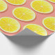 A pattern of fresh & juicy lemon slices in bright, vivid shades of yellow, with a watercolour texture to give it that freshly cut look. They are placed on a salmon pink background for a bright & summery look, like pink lemonade.