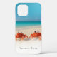 This iPhone 12 tough case features two sun-loving crabs chilling at the edge of a soft ocean-to-sand gradient—literally. Their little crabby paws trail right off the front, wrapping around the case edges for that unexpected art-in-motion look.