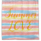 Summer Love is written in sunny yellow across horizontal pastel coral pink, ocean blue, and yellow stripes on white background. Click Customise to edit text, font colour or size. Cool trendy pattern with a beach vibe. Original Designs © TamiraZDesigns