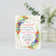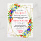 This fun and whimsical baby shower postcard features watercolor blueberries, strawberries, redberries and foliage on a gold geometric frame. The text combines handwritten script and serif fonts for a stylish and modern look. This is perfect for a summer rustic baby shower.