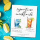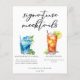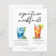 This chic signature mocktails menu sheet features simple black typography above 2 cute drinks and their ingredients for your summer wedding bar. A Blue Hawaiian Sunrise drink and non-alcoholic Arnold Palmer drink add a cool flair to your bar menu. Complete with the couple's names and date for their reception.