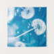 Summer natural floral background. White dandelions and seeds on a blue background. Soft focus. Banner format.