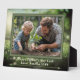 Standing photo plaque with one photo and nature theme. Size 8 x 10 horizontal plaque with easel is easy to customise with a horizontal photo with text beneath. Use the design tool to move and centre your photo, by double-clicking, if needed. The background is of grass and greenery. The frame around the photo is green, with an arrow image below the text. Makes a nice gift for Father's Day from a child, keepsake of fun times as a family, or for grandparents.