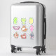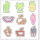 A collection of neon look summer themed stickers. Cactus, iced coffee, watermelon, ice cream, pineapple, orange, tea and coffee, Palm tree