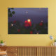 In the dusk of a summer night fireflies float and glow over a rose garden filled with vibrant red roses.