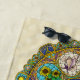 Art Nouveau arches surround the stained glass inspired layers of this mandala, featuring fireworks, sunflowers, seashells, suns, and storms in bright colours to fully embody the feelings of activity that come with summer.