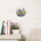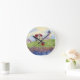 I needed a clock for my bathroom. Yes, my bathroom. So that it would "fit" and look right in the space, I needed something that was frameless, and contemporary. This clock has the water/nature/serene look I wanted. It looks great on my bathroom wall! The blue is well suited to resemble water and the beige matches the vanity. I decided to customize it with inspirational words....perfect! This was my first order, and now, I will certainly come back for future purchases. Very nice, the printing is beautiful and I'm pleased with it.